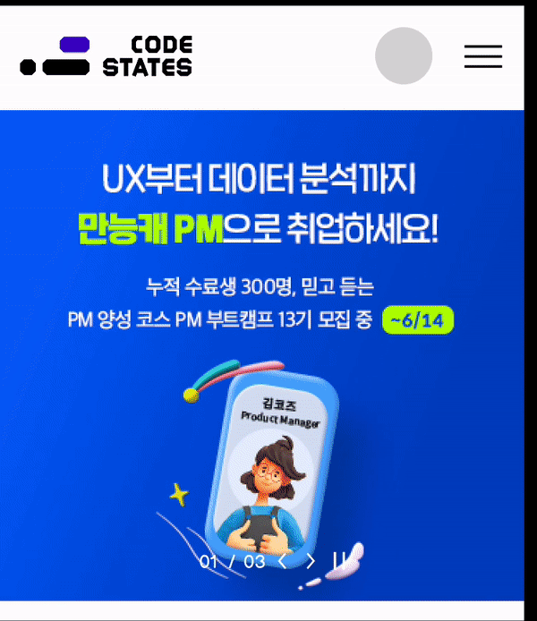 화살표 버튼에는 클릭 이벤트를 추가해서 화살표 방향에 따라 다른 이미지 상태로 이동하도록 만들어줬다.