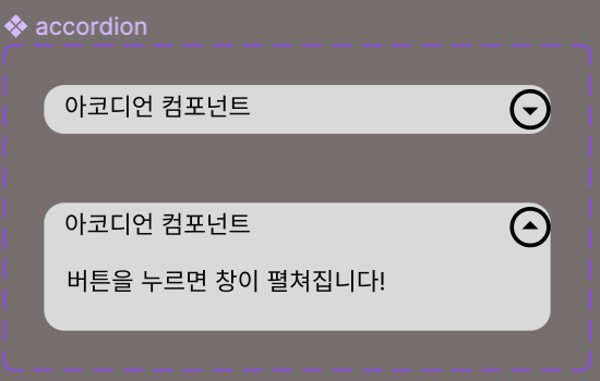 아코디언 역시 컴포넌트로 2개의 상태를 만들어 구현했다.