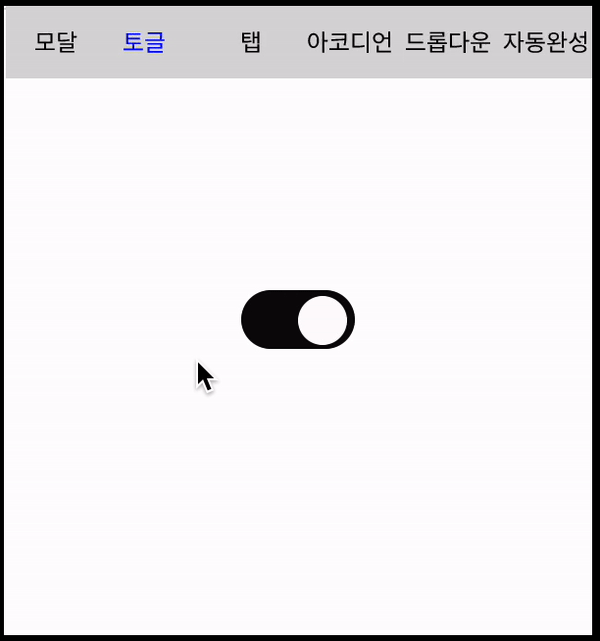 토글은 컴포넌트로 2개의 상태를 만들고 클릭할 때 마다 상태가 변경되도록 만들었다.